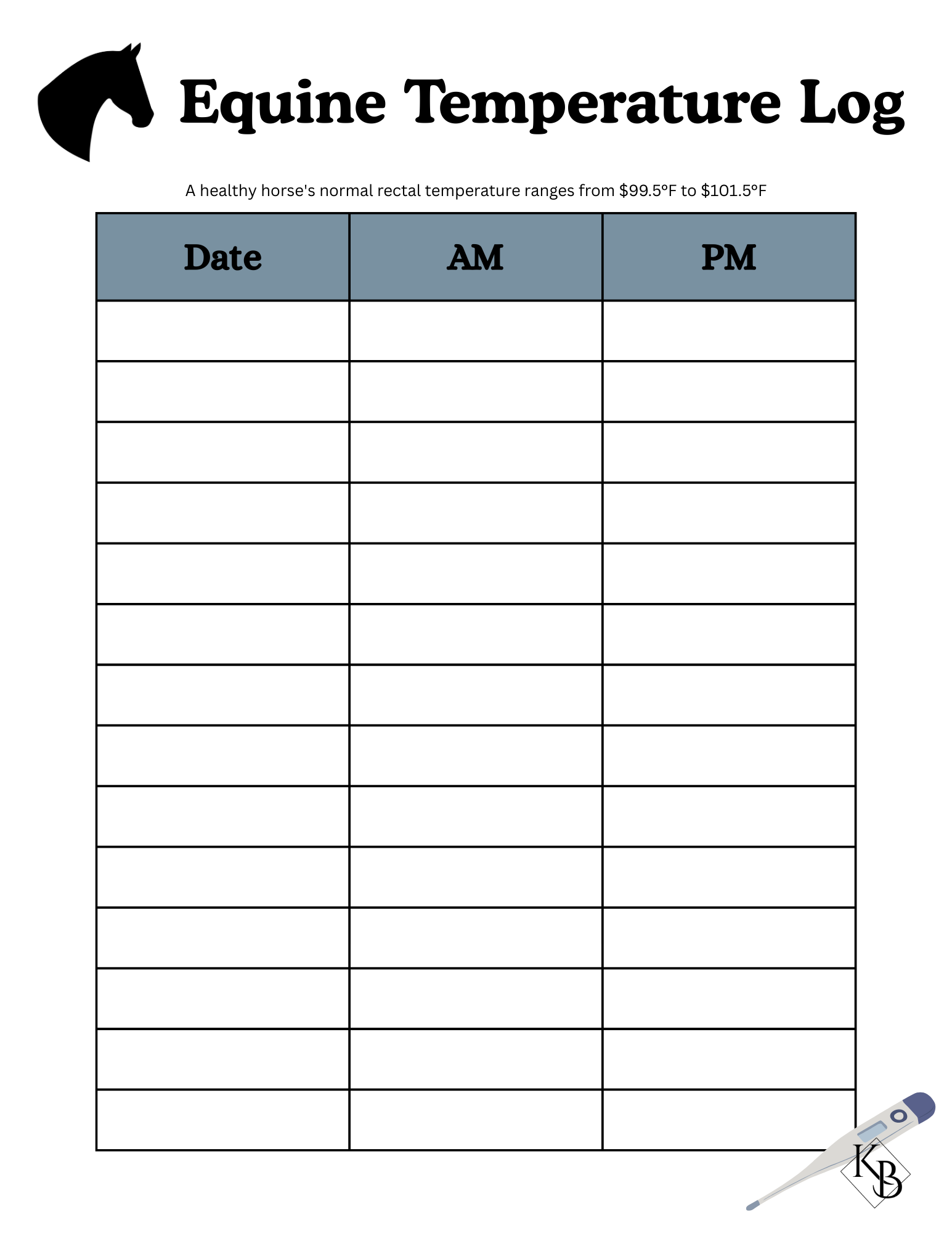 To all our clients, both new and existing: we’ve created a temperature log for your horse(s). It is important to know your horse’s baseline temperature so if something arises you can get the right help quickly and inform vets and trainers.